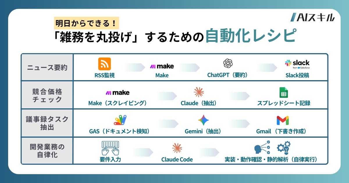 ■ 明日から真似できる!おすすめツールとAIエージェント「自動化レシピ」