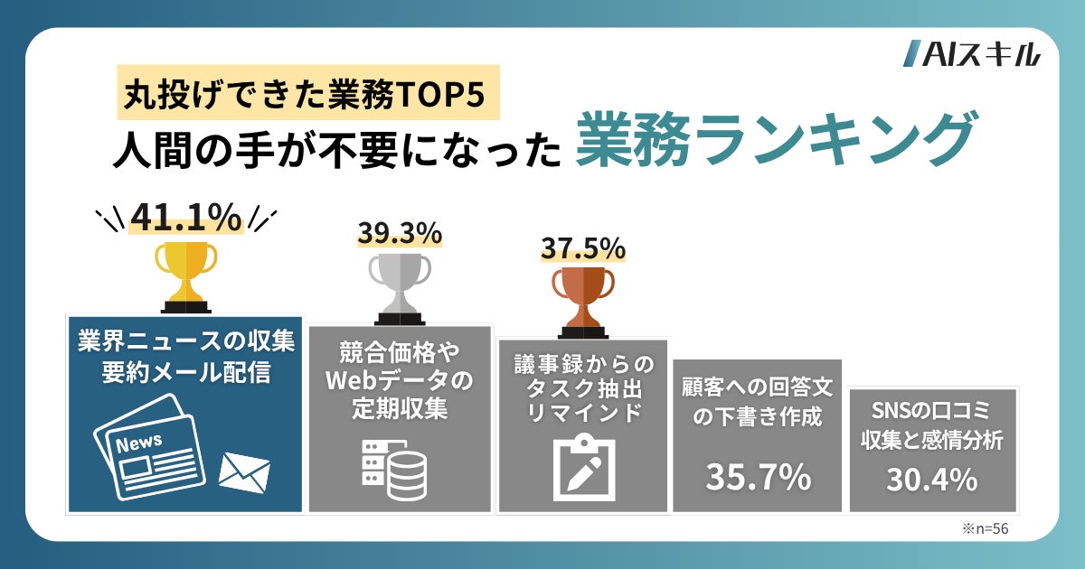■ AIエージェントに「丸投げ」できた業務ランキングTOP5