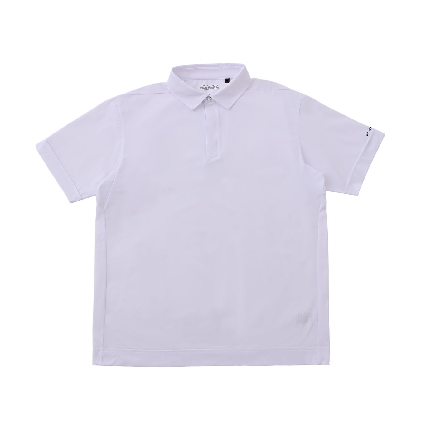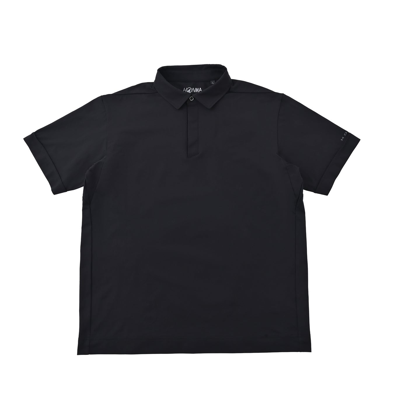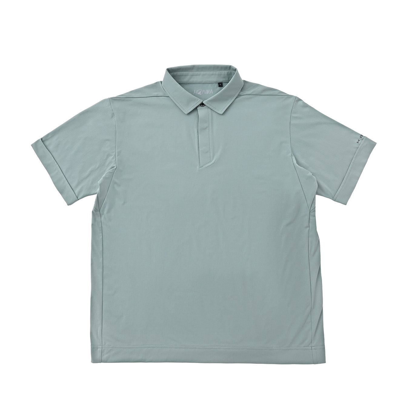 ワイドスプレッドカラーと比翼仕立てで洗練された着こなしに。脇下立体裁断がスムーズなスイングを支え、通気性・吸汗速乾・UVケア機能を備えたピンメッシュ素材使用。