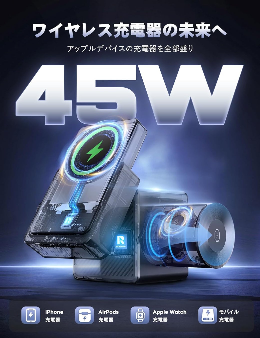RORRY自信作!未来を感じる究極の4in1ワイヤレス充電器