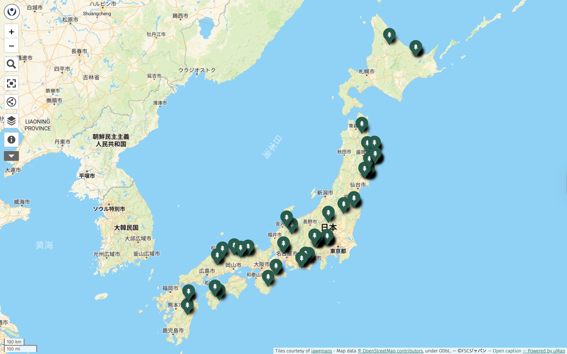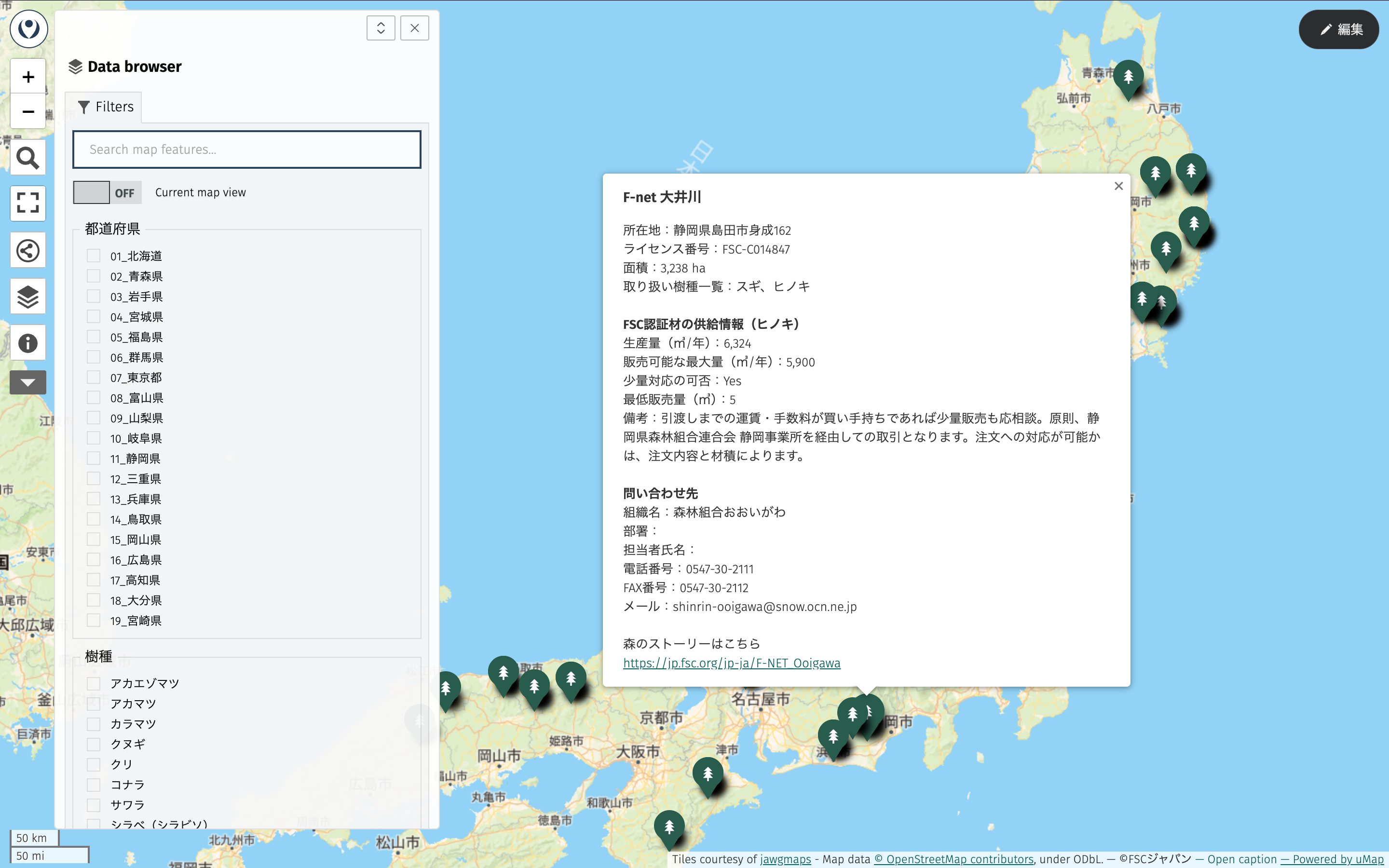 主要コンテンツ:国内FSC認証林マップ