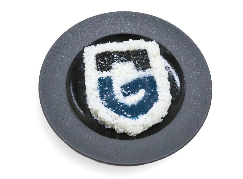商品特徴 青と黒、2色のカレーソースでガンバ大阪のエンブレムをイメージした盛り付けが可能