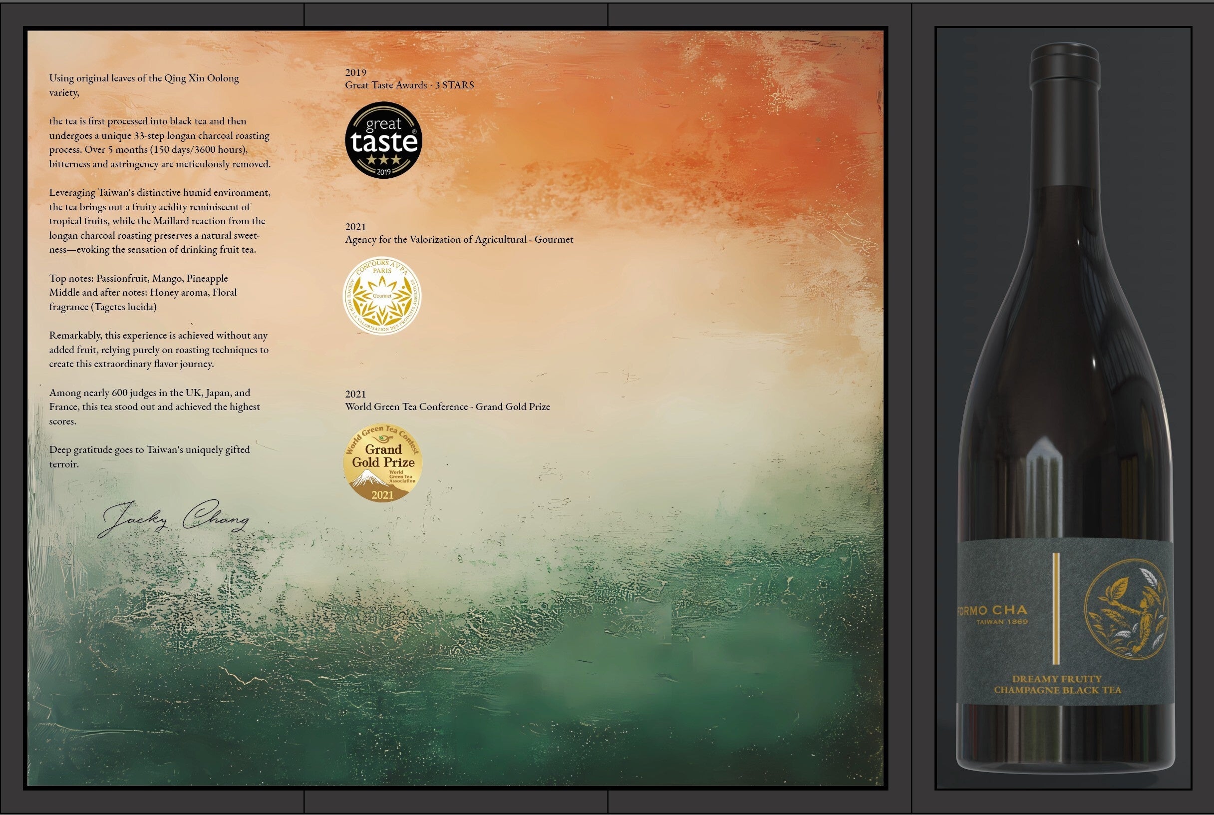 2025年に世界で最も優れたティーブランド20選に選出され、世界四大茶類品評会においても数多くの最高賞を受賞しています。独自のロースティング・カーブを駆使し、深みのある精品茶の風味が特徴です。今回は、夢のような果実の香りが漂う「夢幻果香シャンパン紅茶」、「月神と花神」と名付けられた東方美人茶、そして「皇璽桂冠はちみつ紅茶」を出展します。台湾の精品茶のブランド力を世界に発信します。