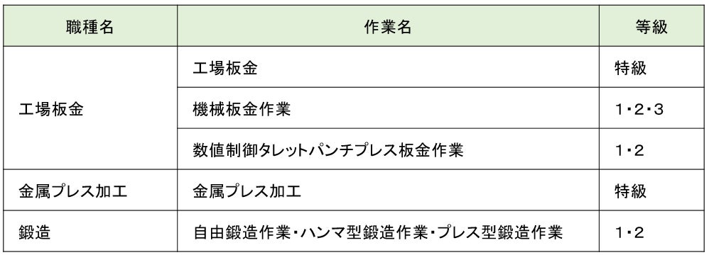 2025年度後期の申請を受け付けています。後期の対象職種は「工場板金」「金属プレス加工」「鍛造」です。