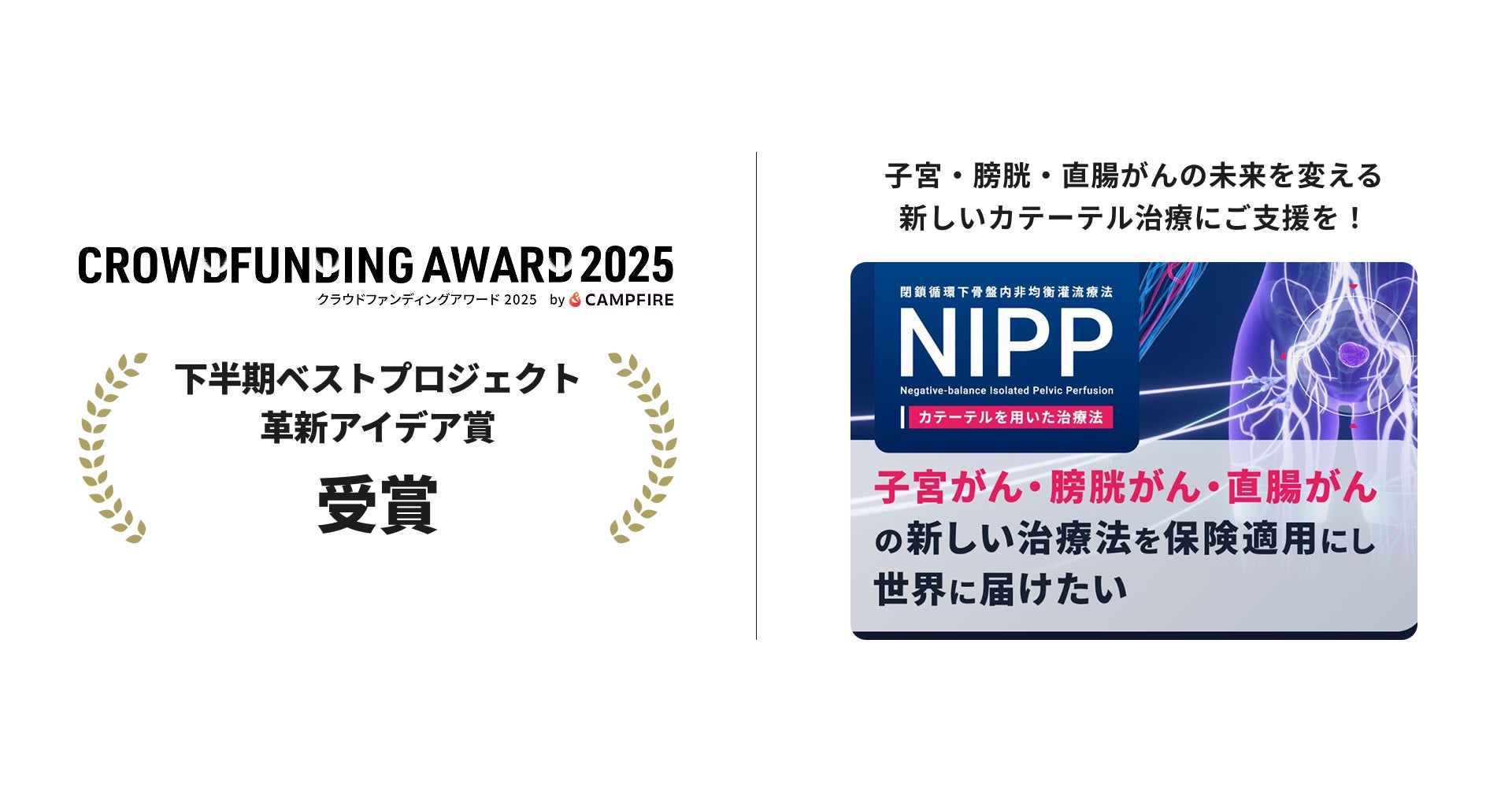 子宮・膀胱・直腸がんのカテーテル治療「NIPP」が「クラウドファンディングアワード 2025」下半期ベストプロジェクト【社会貢献部門/革新アイデア賞】を受賞