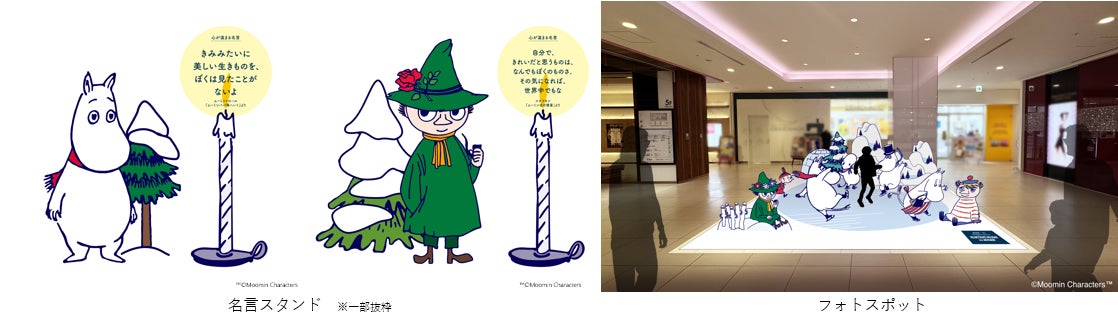 二子玉川ライズ S.C.の館内各所、および二子玉川ライズ ガレリアのツリー付近に、毎日を輝かせるヒントになるムーミン谷の仲間たちの名言が刻まれたデジタルスタンプラリースポットが登場。日常の中にある幸せや新たな発見にふと気付かされる名言スタンドには、子どもはもちろん、大人もつい足を止めて考えてしまうような奥深い言葉の数々が刻まれています。さらに、スタンド付近に設置された二次元コードを読み込んで2カ所巡るごとに、スマートフォン用オリジナル壁紙を1枚プレゼント。4カ所以上巡った後にタウンフロント 1F インフォメーションセンターを訪れると、オリジナルのホリデーカード※もゲットできます。