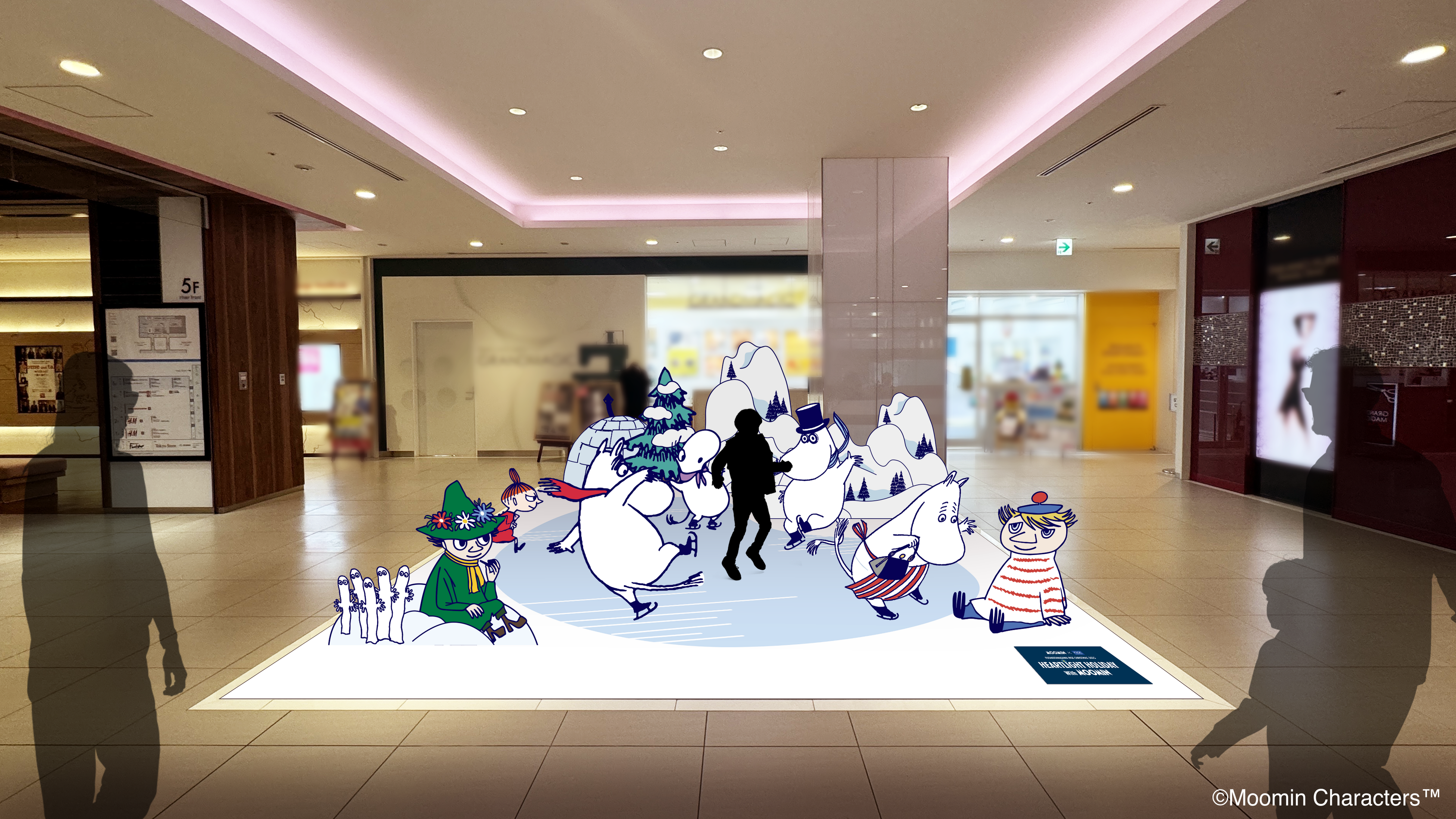 リバーフロント 5Fでは、二子玉川ライズ 中央広場に登場するスケートリンクを思わせるムーミン谷の仲間たちのフォトスポットが登場。この冬ならではの、思い出の1枚を写真に収めることができます。