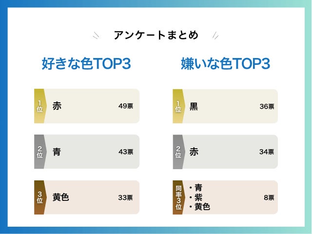 嫌いな色1位は「黒」で、2位の「赤」とともに、他の色よりも多くの票を集めた。