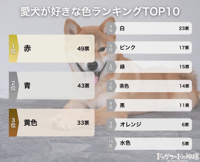 アンケートによると、好きな色の1位は意外にも「赤」でした。本来はワンちゃんが見えづらい色とされているにもかかわらず、多くの支持を集めています。