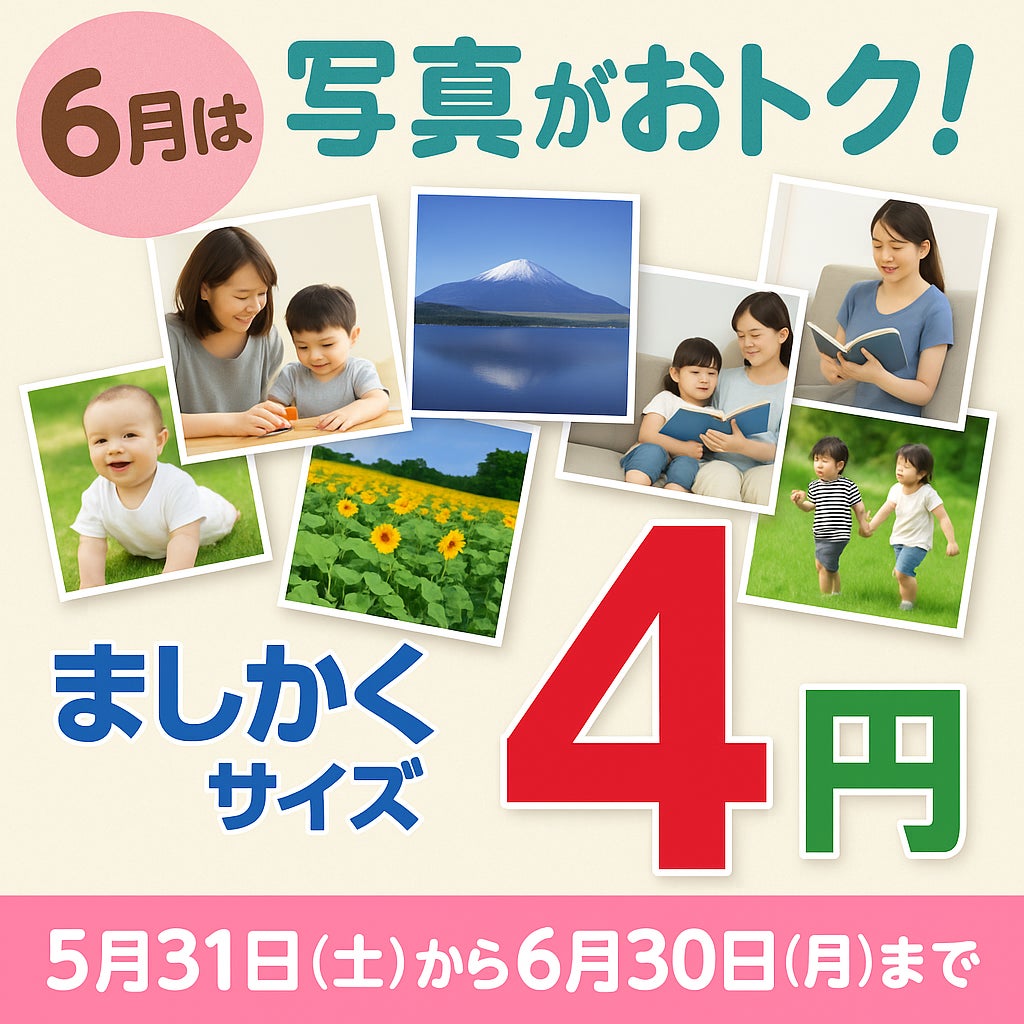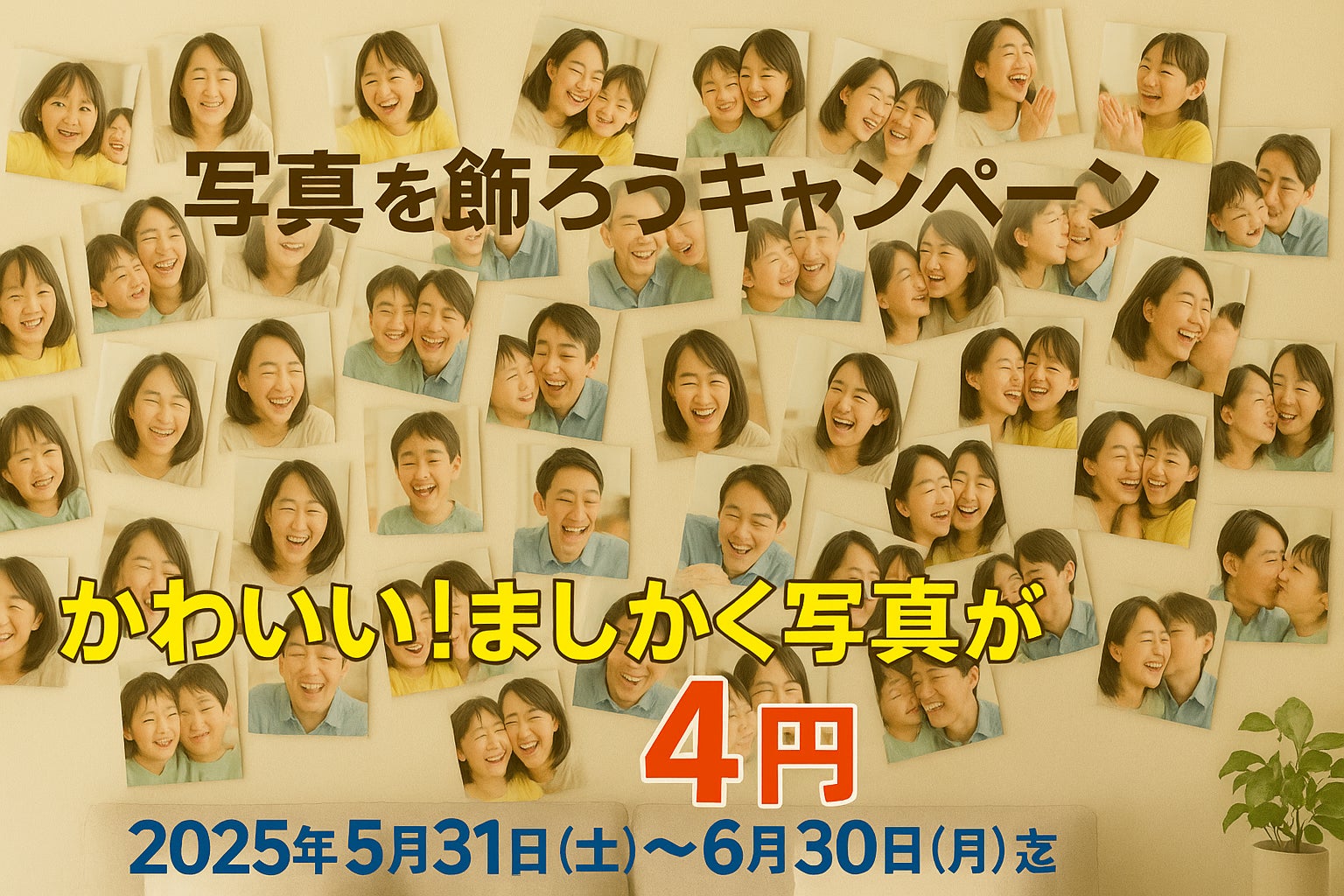 株式会社クロスワン(本社:東京都豊島区、代表取締役:品川あきら)・ABCデジカメプリント事業部は、超高詳細銀塩写真を使用した「ましかく写真=1枚4円(税込4.4円)」の期間限定キャンペーンを2025年5月31日(土)~6月30日(月)まで全国対応で実施します。お一人様何枚でも・何回でも注文可能です。