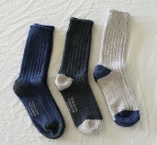 「はくひとおもい」をコンセプトに、履く人のことを真剣に考えた靴下作りをしています。素材はコットン、リネン、ウールなどの良質な天然素材にこだわって作られています。例えば、エジプト産のギザコットンやエコシルク、サイクルコットンなどが使われています。新旧の編み機を組み合わせることで、多様な編み方が可能になり、様々な特徴を持つ靴下を生み出しています。