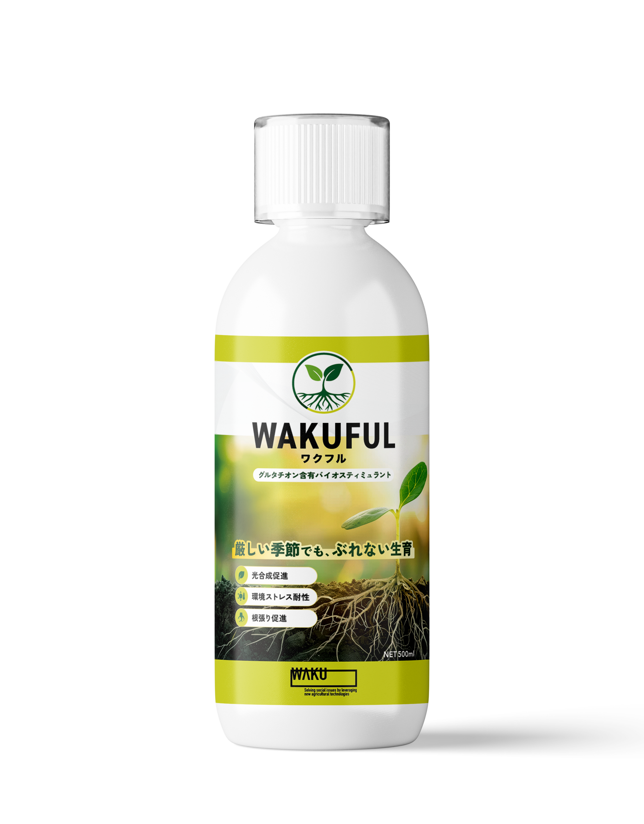 こうした環境下では、従来の施肥設計や管理手法だけでは対応が難しい場面も多く、作物の状態そのものを見ながら調整できる資材への関心が高まりつつあります。WAKUFULは、グルタチオン研究の知見を農業の現場にどう接続できるかという検討を積み重ねる中で形になったプロダクトであり、その結果として、変化の大きい栽培環境下においても作物の状態を見ながら使われる資材としての位置づけが明確になってきました。