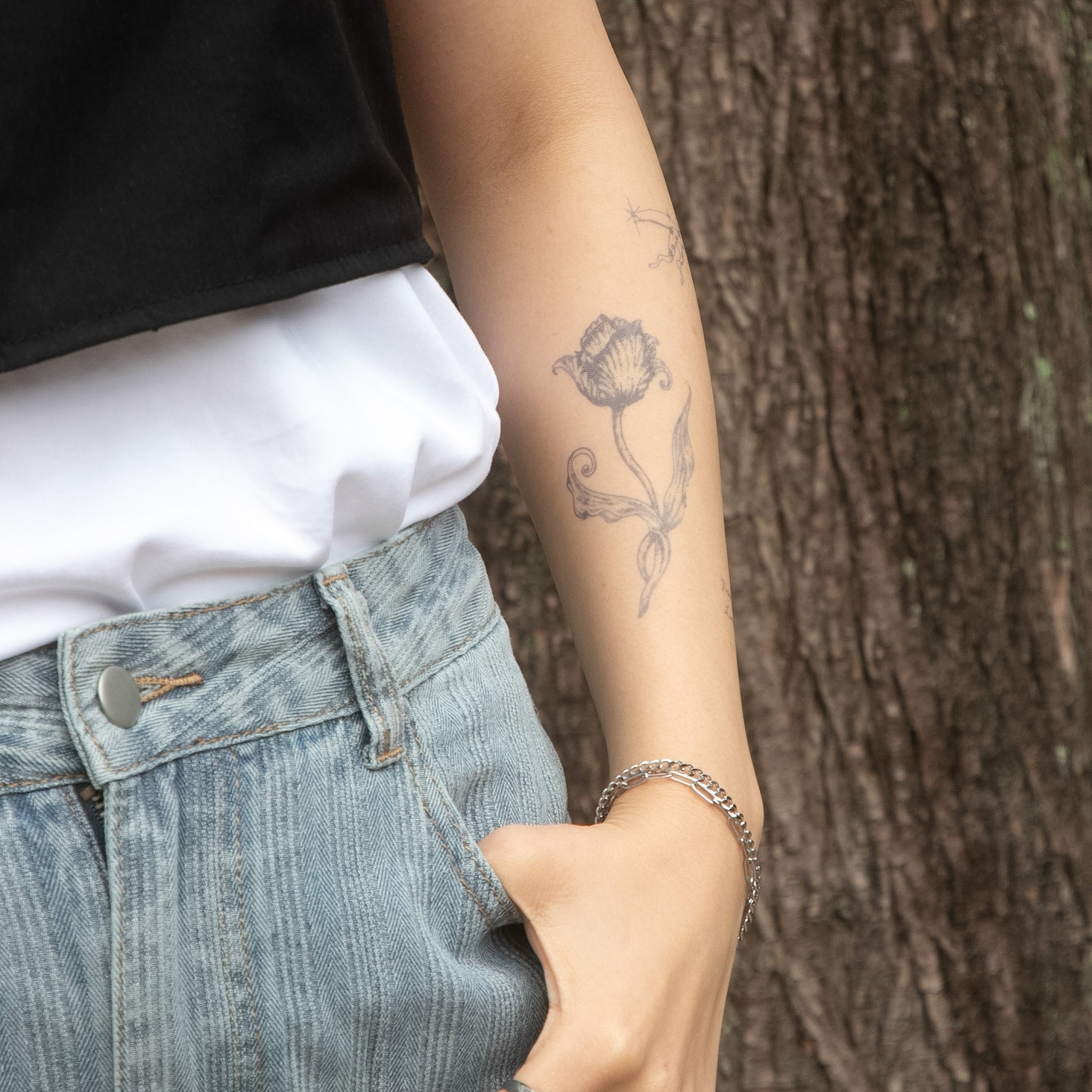 従来のタトゥーシールのようなテカリもなく、自然な色味でまるでリアルなタトゥーのよう。