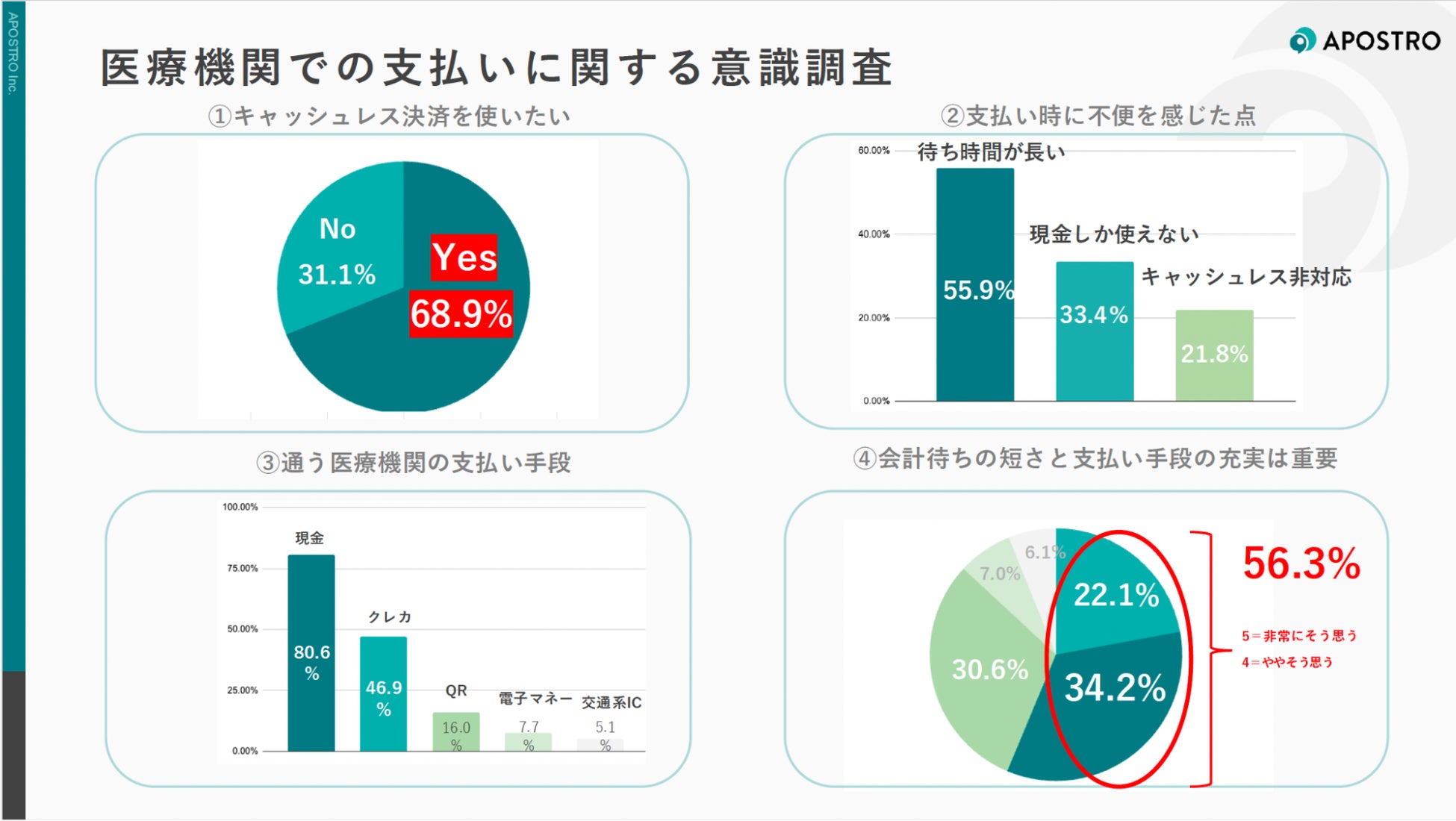 株式会社APOSTROは、全国1,000名を対象に医療機関での会計体験やキャッシュレス決済に関する意識調査を実施しました。