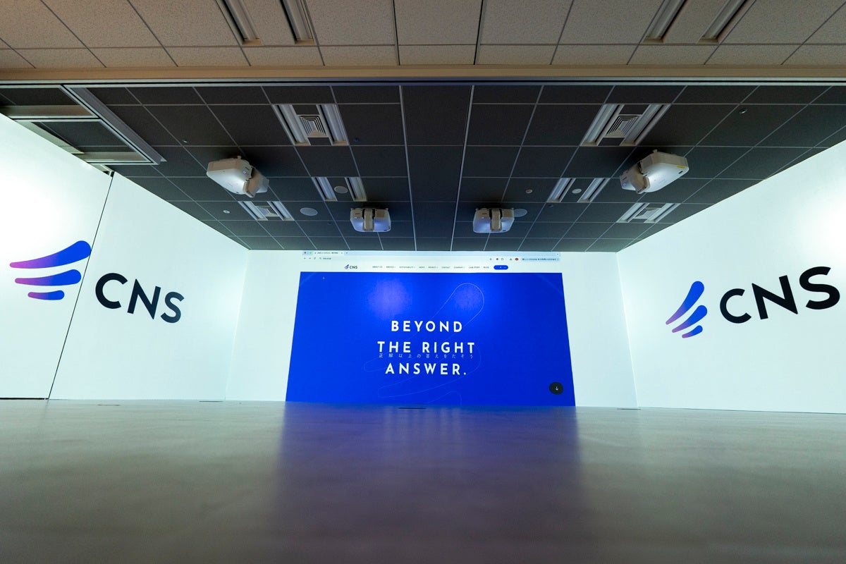 人の体験をアップデートし、“WOW”を増やすことを掲げる株式会社イマーシブ(以下、イマーシブ)は、ITインフラからクラウド、セキュリティまで企業の情報システムをトータルで支援する総合ITソリューション企業・株式会社シイエヌエス(本社:東京都品川区上大崎、以下、シイエヌエス)の新オフィスに、天地まで投影された映像空間に囲まれる没入型会議空間を実現する「Immersive Engine」と、プロジェクター映像を高コントラストに表現する塗料「Immersive Magic Wall」を導入いただきました。