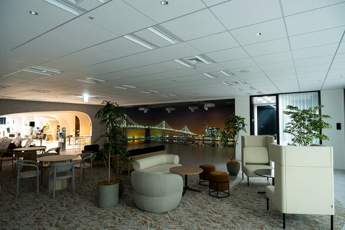 という2つのテーマを掲げ、新オフィスづくりに取り組んできました。本導入により、同社のオフィスは“働く場所”から“集まりたくなる場所”へと進化。社員の主体的な交流を促すと同時に、来訪するお客様や学生など多様なステークホルダーに対して、これまでにない没入感と説得力を備えたプレゼンテーション空間を実現しています。