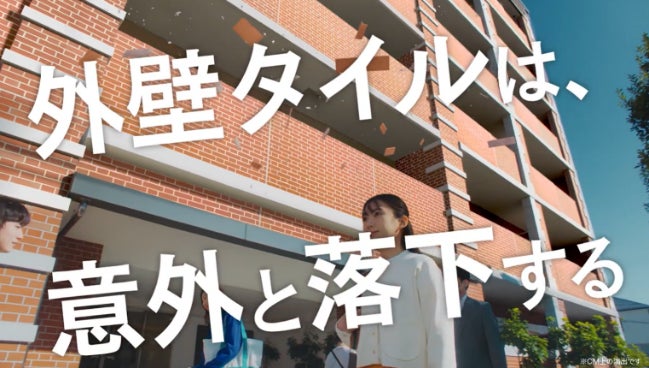 CMでは、増加する外壁落下事故のリスクを訴求し、新しい点検方法としてドローン診断技術の認知拡大を目指します。