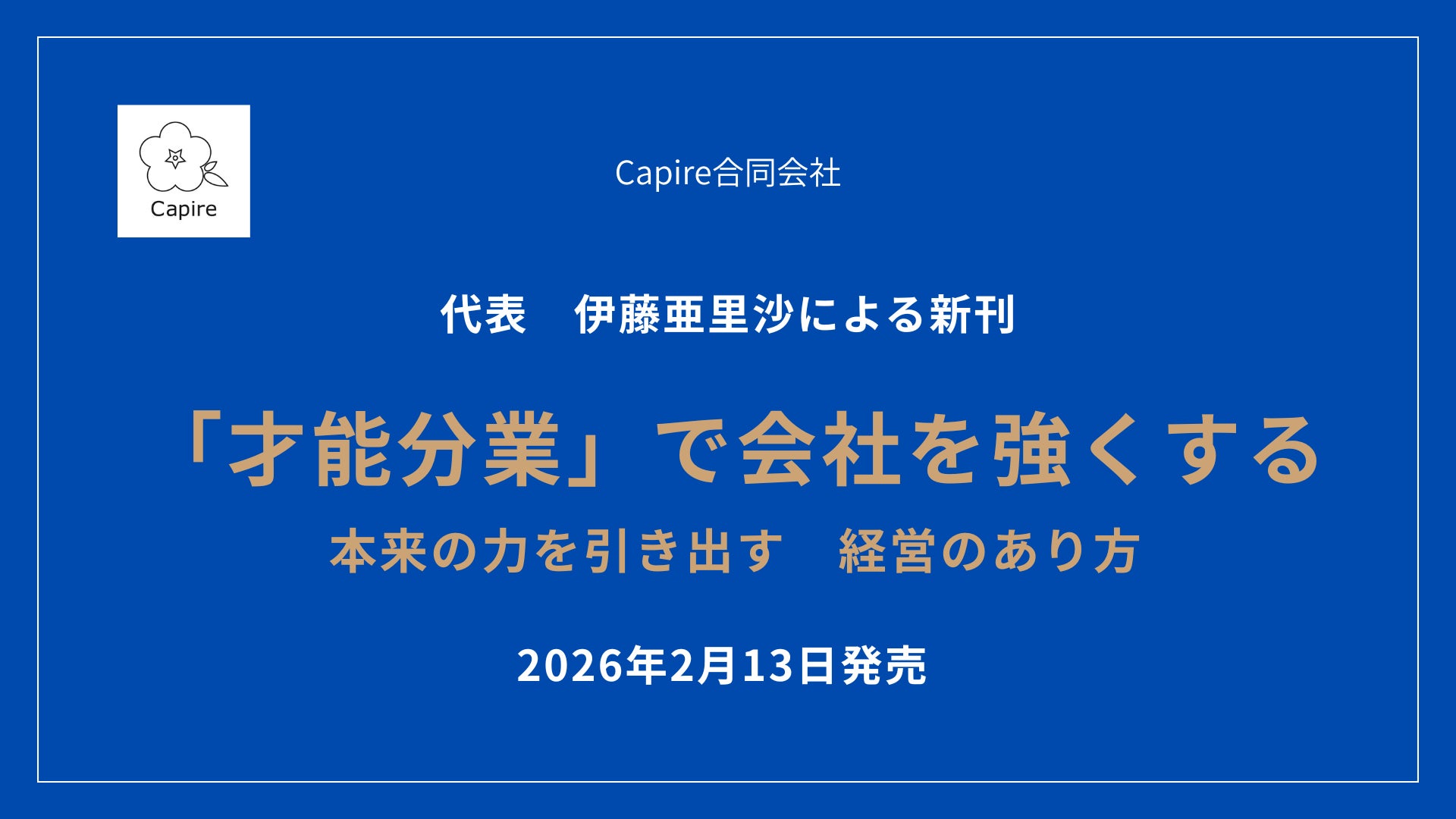 伊藤亜里沙(Capire合同会社 代表)は、新刊「才能分業で会社を強くする 本来の力を引き出す 経営のあり方」 を、2026年2月13日に発売します。