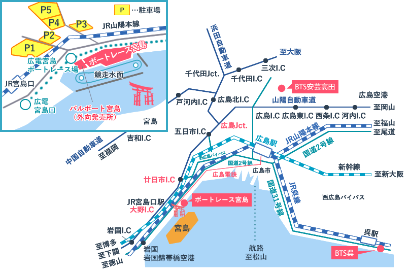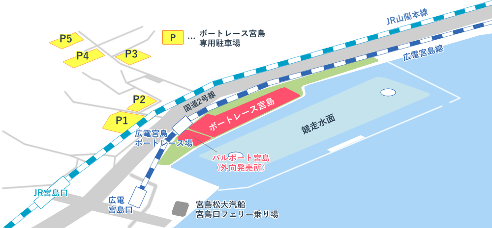 ボートレース宮島専用駐車場をご利用の場合、インフォメーションで1,000円分の舟券と駐車券の提示で無料とさせていただきます。