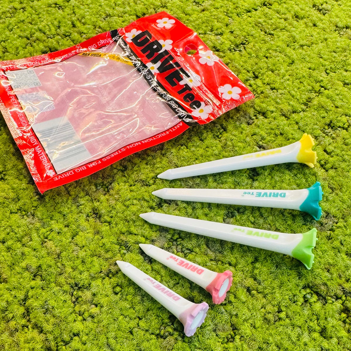 発売開始時からSNSを中心に耐久性のプラスティックのティーよりとても使いやすいと話題沸騰中のDRIVE Tee(R)。日本のゴルフシーンをよりよくするために生まれた、日本生まれのゴルフティーです。様々なゴルファーからのフィードバックを生かし反映。常にゴルファーが求める飛距離、方向性、安定性、ファッション性、全てを様々な観点で見直しゴルフファンを増やす思いで作られた花びら型ゴルフティーです。ご使用いただくとその良さを実感いただけます。
