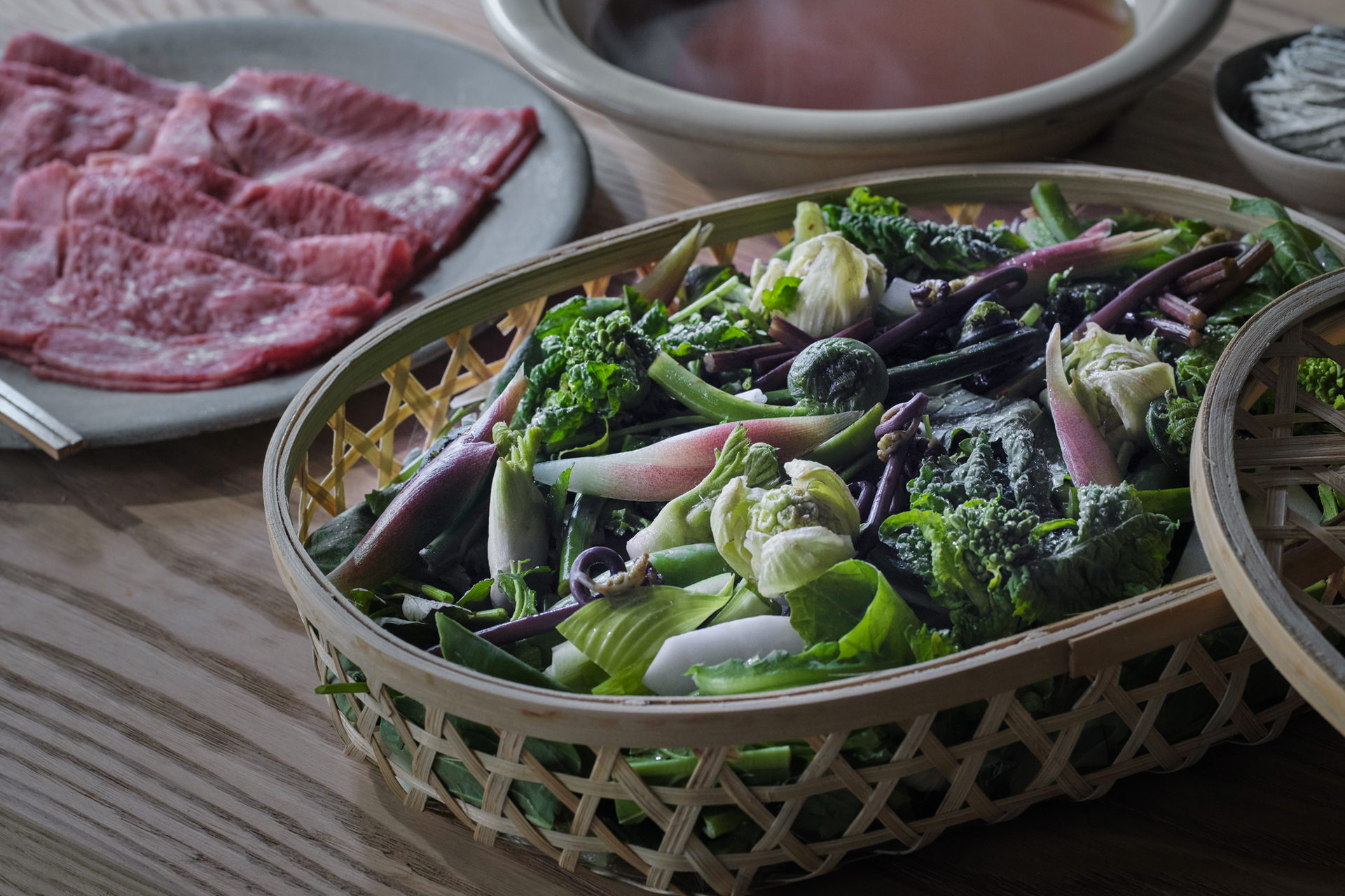 上質な牛サーロインをしゃぶしゃぶのように合わせ、芽吹きの滋味と肉の旨みを重ねる仕立てに。締めには桑麺をご用意し、最後まで春の余韻を堪能いただけます。