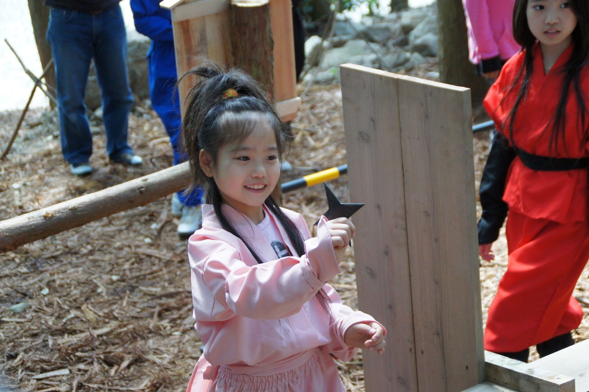 手裏剣術や隠密行動の技など、数種類の忍者修行を体験できる内容となっており、小さなお子様から大人の方まで幅広い世代にご参加いただいております。