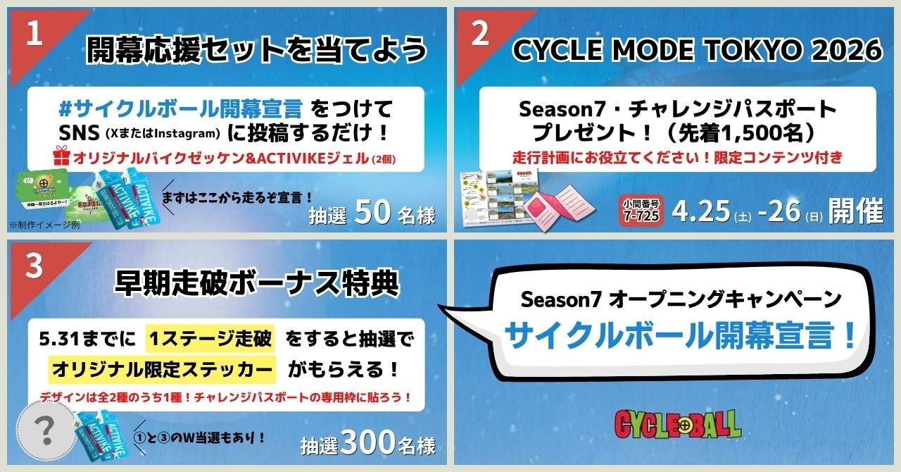 Season7の開幕を記念し、「サイクルボール開幕宣言!」キャンペーン(2026年4月17日〜5月31日)を実施しています。