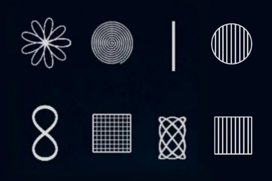 波形の形によって照射範囲や仕上がりが変わる。加工対象に応じて、照射されるレーザーの波形パターンを自由に切り替え可能。直線・螺旋状など8種類の波形があらかじめ登録されており、複雑な形状や細管、金型、工具などの細部にも最適な照射が行えます。