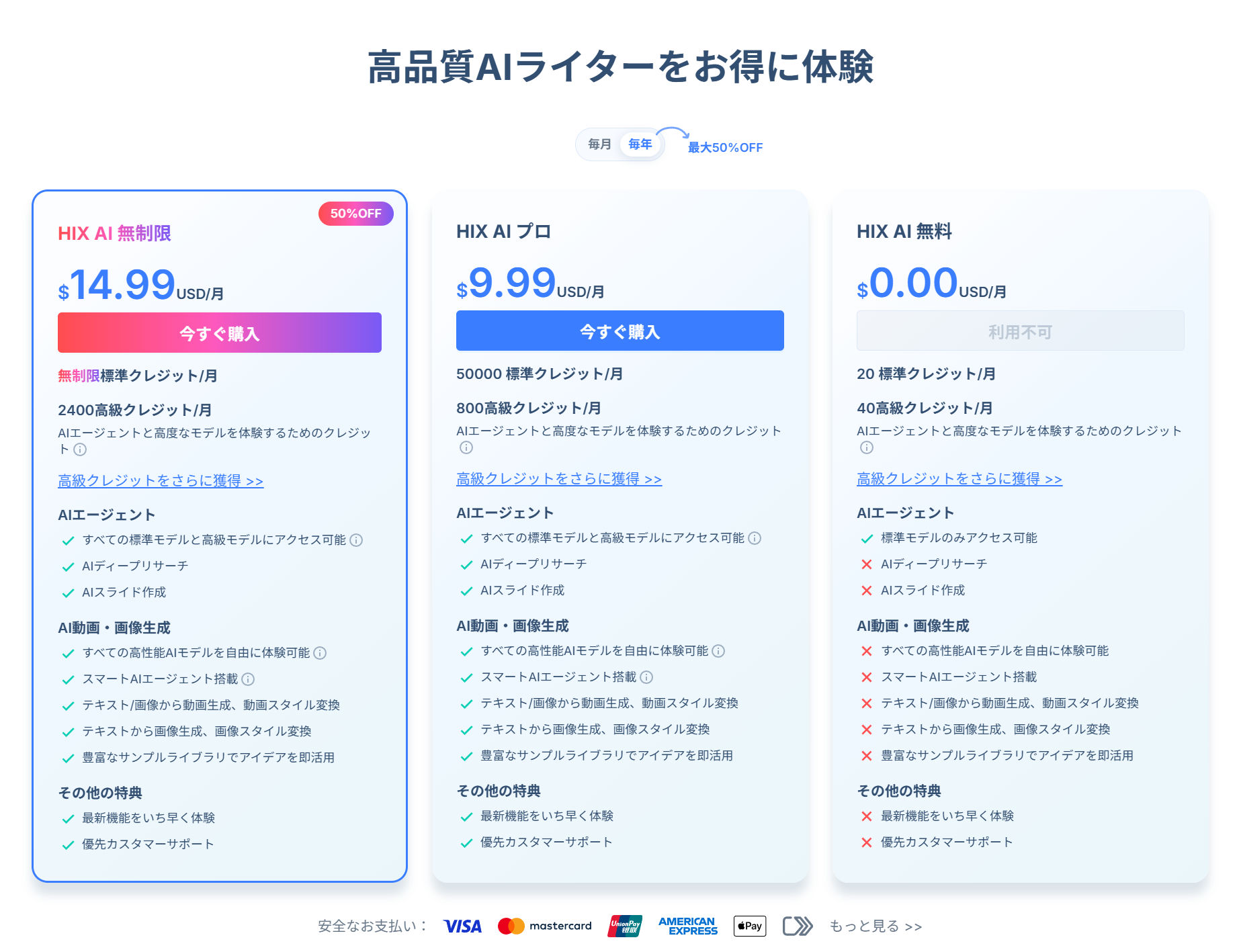 ✨HIX.AI「ディープリサーチ」の購入プラン