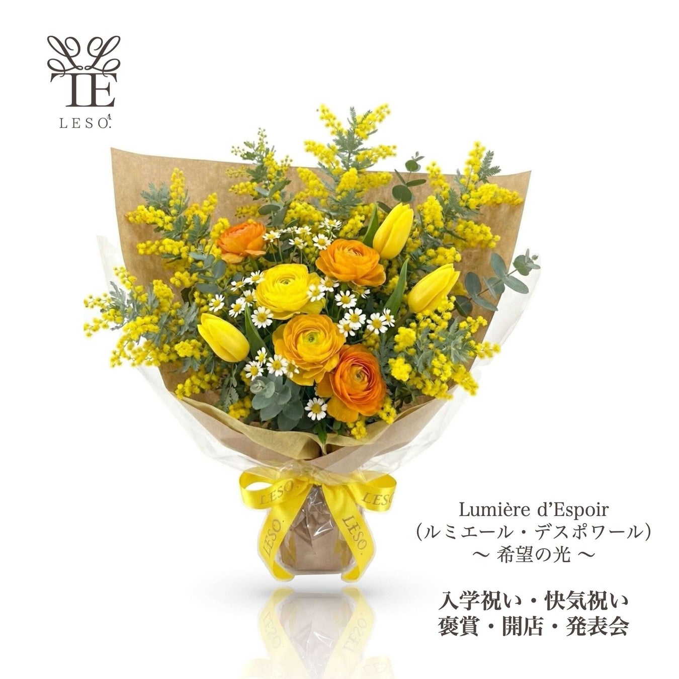 大切な方へのお返しとして、今年は生花でもスイーツでもない、新しい選択肢を。 「FLOWER LESO. 花束シリーズ」は、ミモザやユーカリなどの天然精油を贅沢に使用。