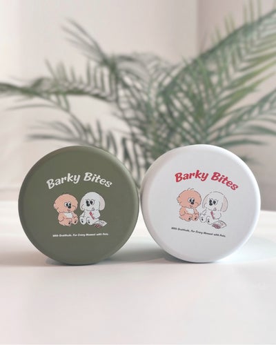 Barky Bitesオリジナルデザインのおやつ缶は、愛犬のおやつを清潔に、そして心地よく保管できるよう、使いやすさとデザイン性の両方にこだわって仕上げています。