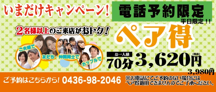 電話予約限定 ペア割 70分3620円 2/17オープンしました。