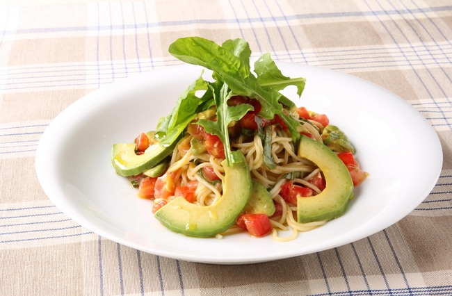 濃厚なアボカドとさっぱりとした紫蘇の風味が、マッチしたスパゲティ。完熟トマトの甘みが美味しさを引き立てます。