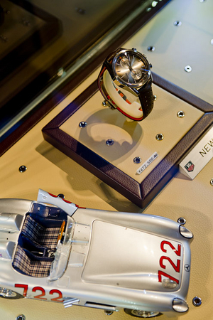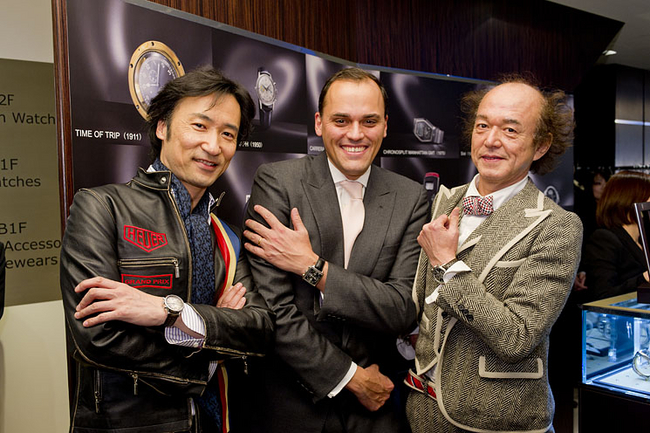 銀座みゆき通りに位置するタグ・ホイヤーの直営店〈エスパス タグ・ホイヤー 銀座〉(http://www.tagheuer.co.jp/shop/tagheuer_shop/)にて、限定モデル〈タグ・ホイヤー カレラ 300 SLR 1887 クロノグラフ〉の新作発表会が開催されました。発表会ではスペシャルゲストの「ENGINE」(http://engine-online.jp/) 編集長の鈴木正文氏と、雅楽師 東儀秀樹氏による「時計とクルマ」をテーマとしたトークショーが開催され、〈エスパス タグ・ホイヤー 銀座〉にお集まりいただいた多くの来場者を沸かせました。