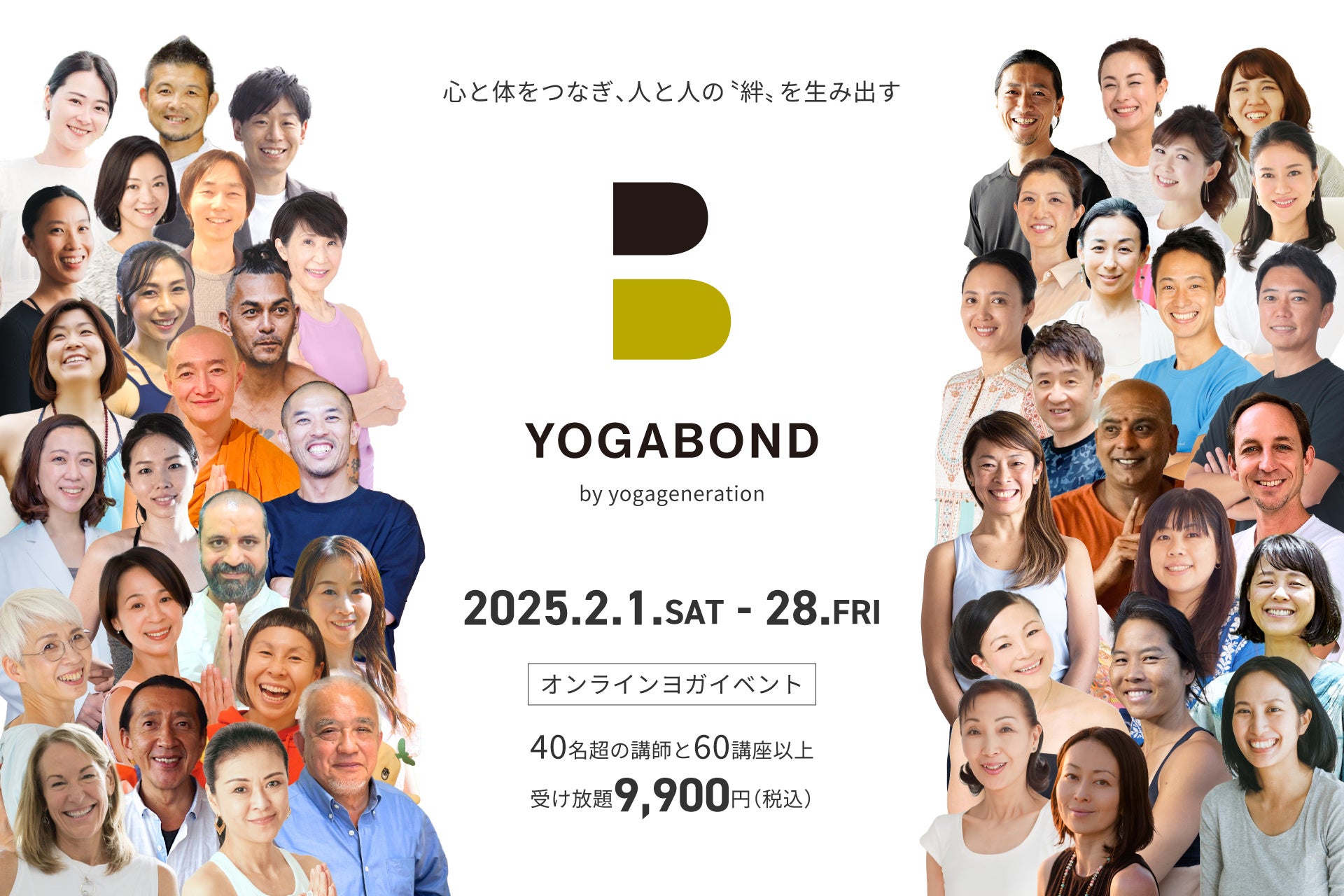 「YOGABOND」は2025年2月に開催。日本を代表する40名以上のヨガ講師による60クラスが9,900円で受け放題!オンラインヨガを通じて体と心、そして人と人が繋がり〝絆〟を感じる体験を!