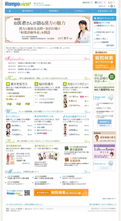 漢方薬を処方する医師や実際に服用しているタレントインタビューなど、幅広いレベル・内容のコンテンツを