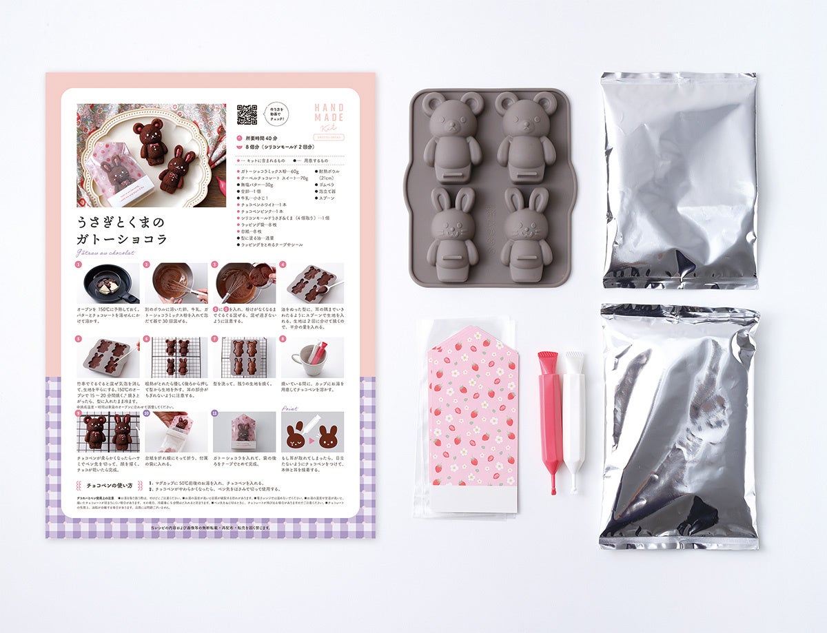 『材料をぐるぐる混ぜて焼くだけ♪うさぎとくまのガトーショコラ』