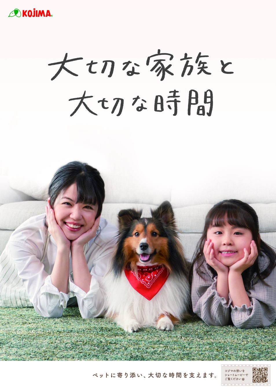 「大切な家族と、大切な時間」をテーマに、ペットの専門店コジマでは、年間ポスターのほかにショートムービーが作成されました。