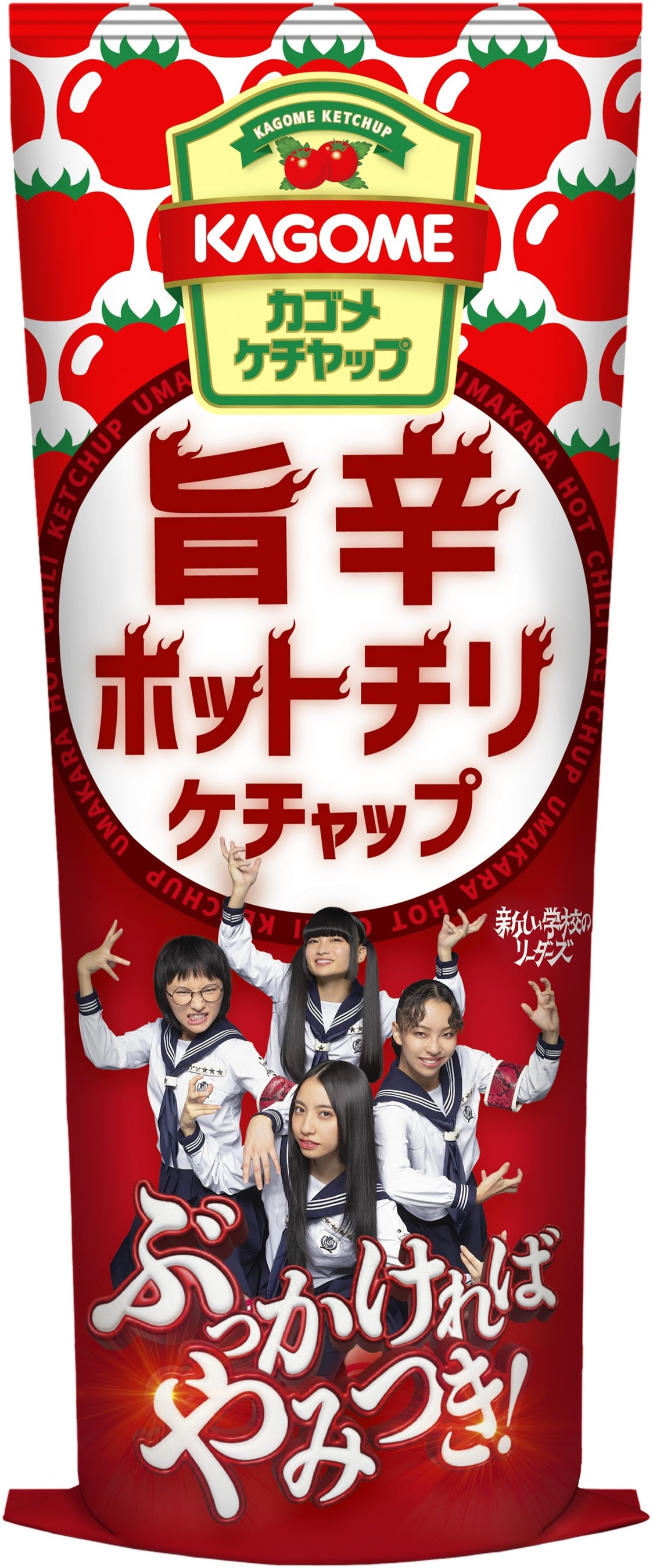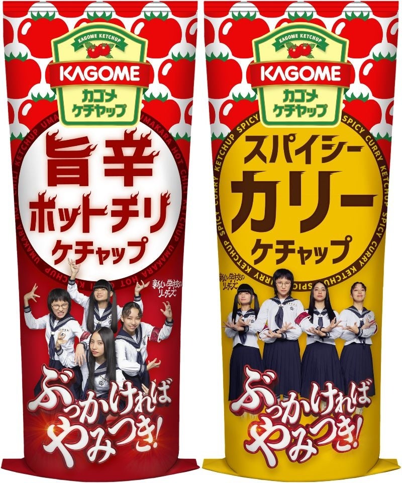 カゴメケチャップの人気フレーバー「旨辛ホットチリ」「スパイシーカリー」に新しい学校のリーダーズ限定コラボパッケージが登場!あなたもぶっかけるだけで、一気にやみつきに!
