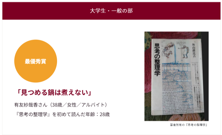 外山滋比古さん一周忌『思考の整理学』エッセイ賞 受賞作品は以下よりお読みいただけます。
