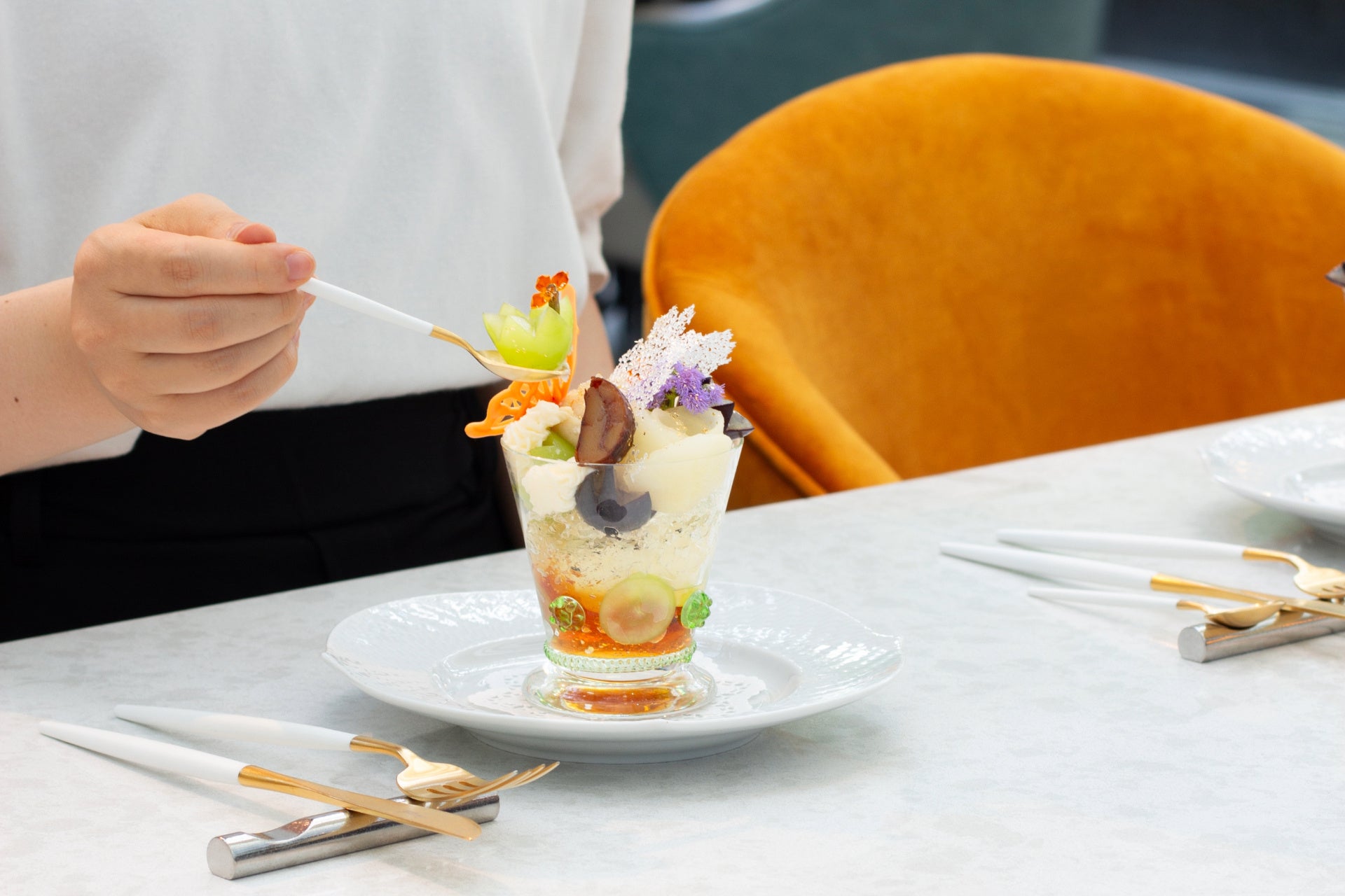 より上質なスイーツや豊かな時間を求める方へ、岡山県で育ったシャインマスカット「晴王」をはじめ、滋味深い秋の味覚が彩る全6品のコースをご用意。アフタヌーンティーやスイーツブッフェでは味わえない、“可愛い”が生み出される瞬間を目にすることができます。2024年3月フルリニューアルし誕生したシェフズカウンター席で、ワクワクするひとときをお楽しみください。