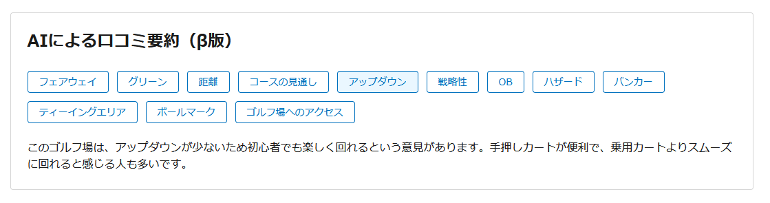 一部のコースでは数千件に上る口コミが投稿されており、ゴルフ場選びに有益な情報である一方、ユーザーが必要な情報を短時間で探し出すことは困難になっていました。結果として、意思決定に時間を要し、予約離脱の可能性が課題となっていました。