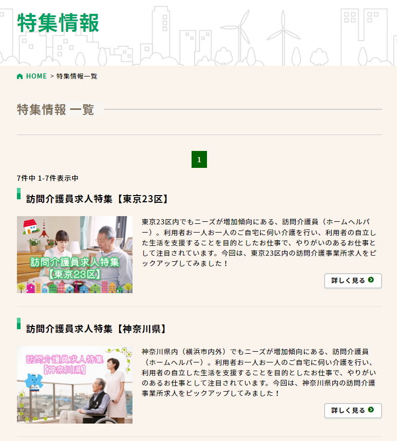 特集記事内の求人を閲覧し、その職種や施設・事業所の特色、該当地域での求人の傾向や特徴を知ることも可能です。