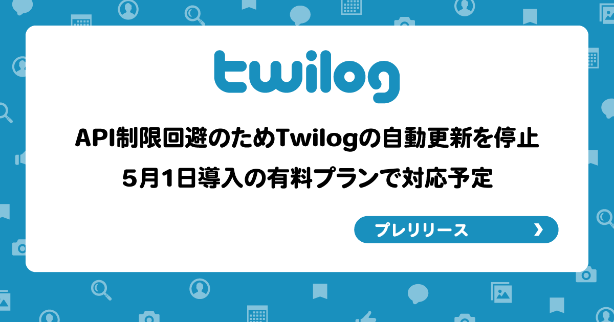 API制限回避のためTwilogの自動更新を停止、5月1日導入の有料プランで対応の予定