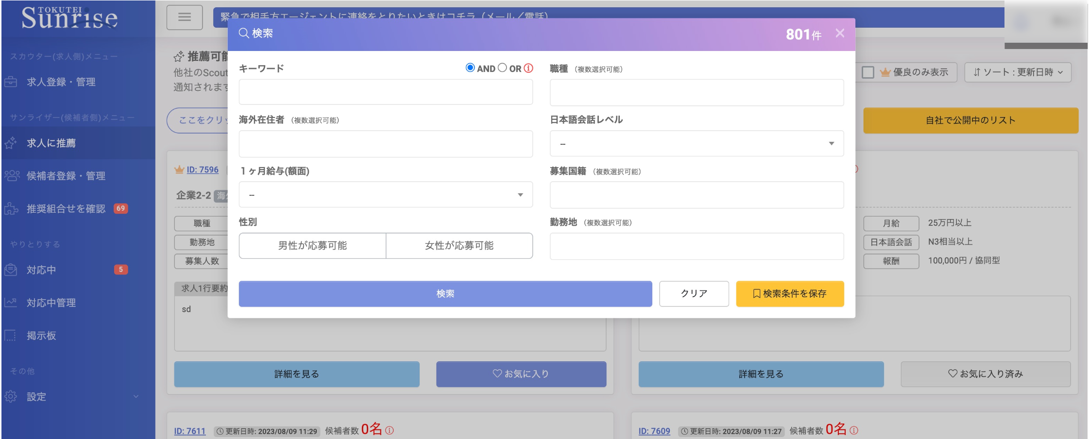 「Sunrise」と同様日本最大級のアクティブな特定技能求人数の集約・提供を目指します。