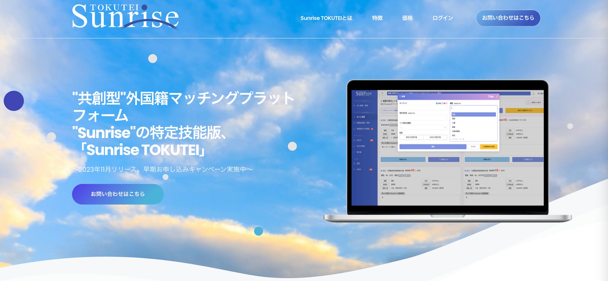 【早期申込キャンペーン実施中】登録支援機関向け「特定技能」マッチングプラットフォーム「Sunrise TOKUTEI」の提供を開始します。