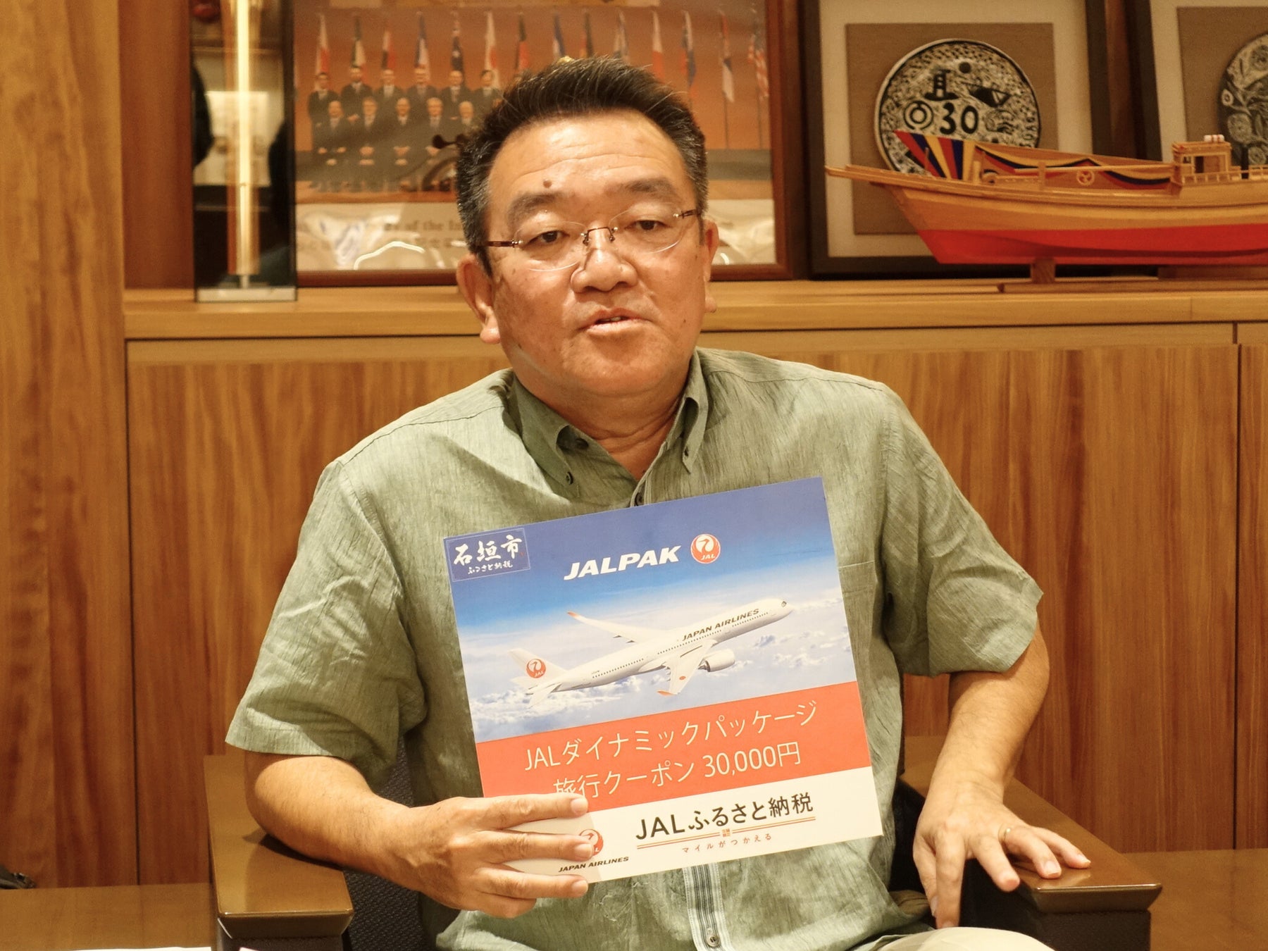 「石垣島は全国のJAL会員さまに大好評。日本で最も人気ある旅先の一つ」と語る黒島さん。JALからは「往復航空券+宿泊」がセットで予約できるパッケージのご提案です。「これから春、夏、石垣島が光り輝く季節にJALで島へ足を運び、宿泊して楽しんでいただけるプランをご提供できることに航空会社として喜びを感じます。石垣島へはJALで、ふるさと納税でお越しください。おまちしてます」。