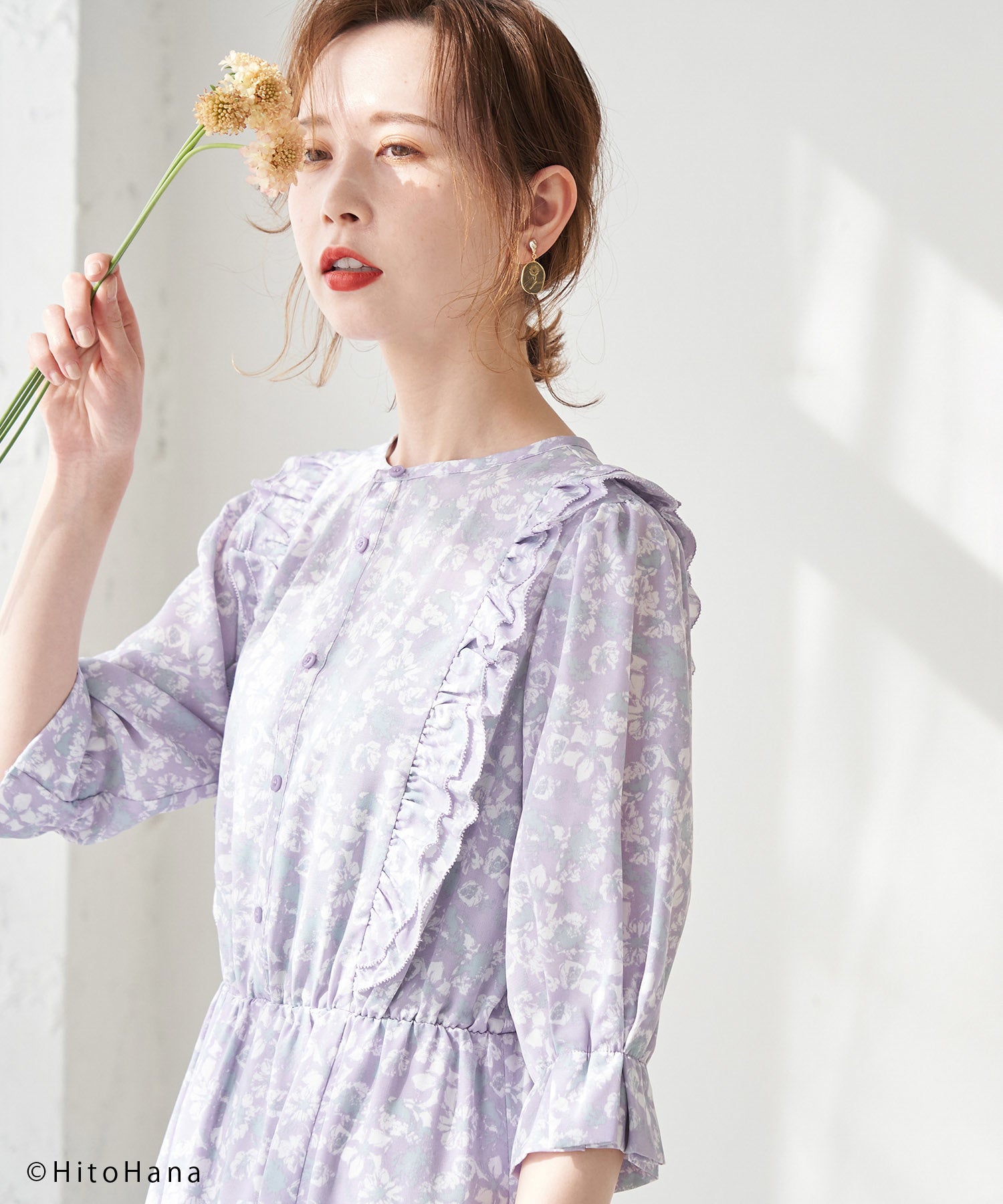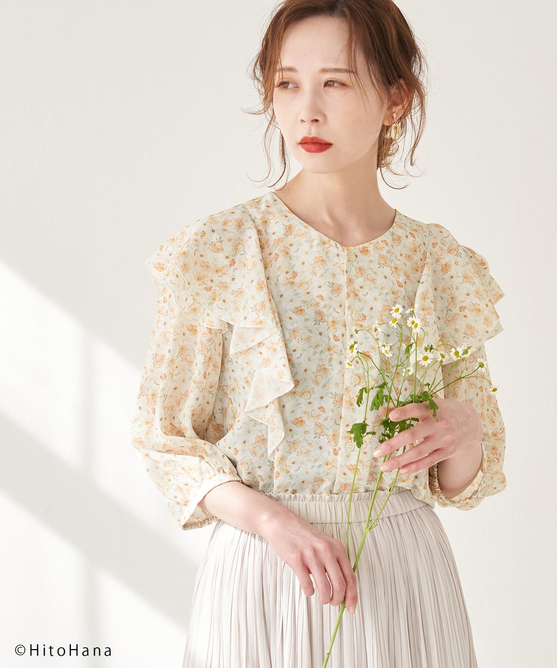 【HitoHana×ROPÉ PICNIC】花柄ラッフルブラウス
