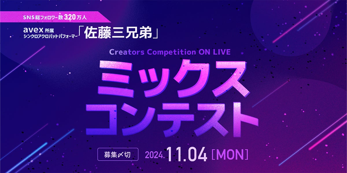 【楽曲コンペ】avex 所属人気シンクロアクロバットパフォーマー佐藤三兄弟初のオリジナル曲コンテストをONLIVE Studioが開催中!第3部・ミックスコンテストを10/22〜受付開始