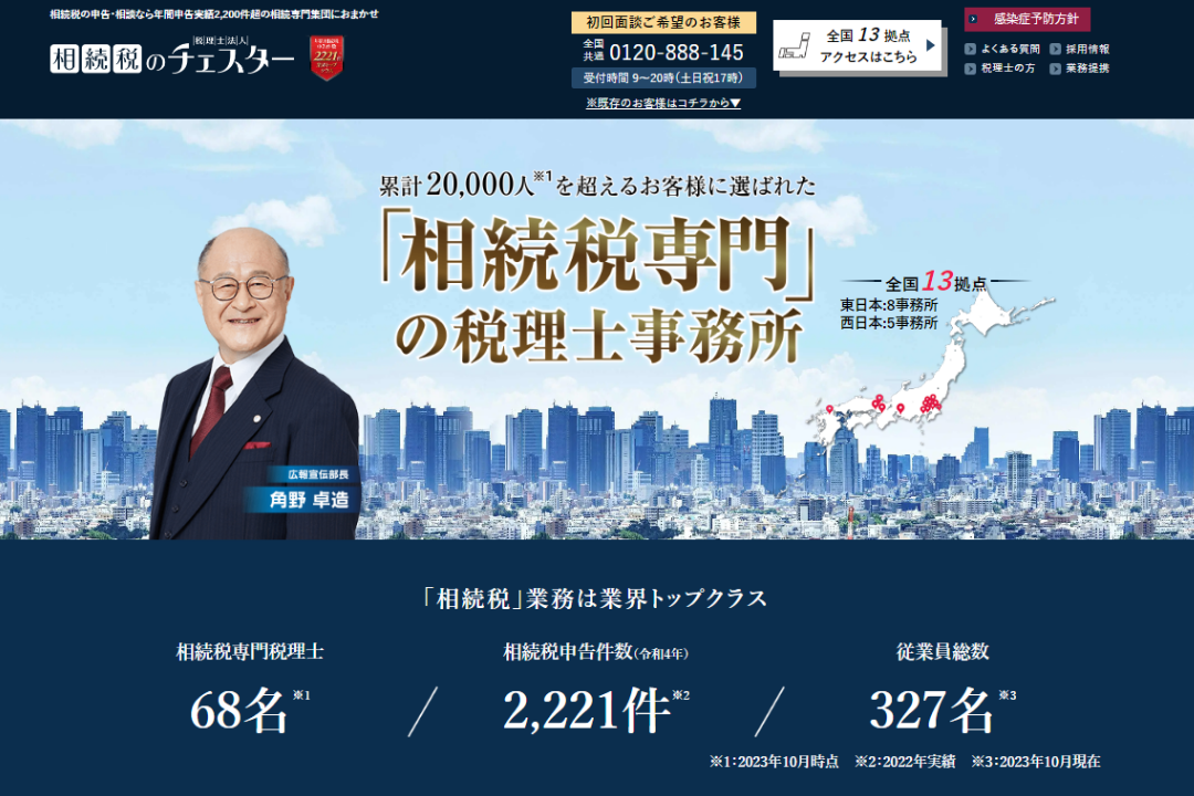 高齢化社会であることに加え、平成27年度の税制改正「基礎控除額」の引き下げにより、相続税申告手続きが必要とされる該当者が増えました。また、令和5年度には「生前贈与」や「空き家」に関する税制改正の発表も行われ、相続対策や相続税申告はより複雑化し、相続税の専門知識を持つ税理士の需要が高まっていると感じております。東京本店から始まったチェスターは、現在グループ会社を含め社員数は300名を超え、全国14拠点に拡大する現在進行形で成長中の事務所です。今後も、社員の成長と共に需要のある地域へ展開を進め、少しでも多くの皆様の相続のお役に立てるよう、相続税専門で圧倒的No.1の税理士事務所を目指してまいります。